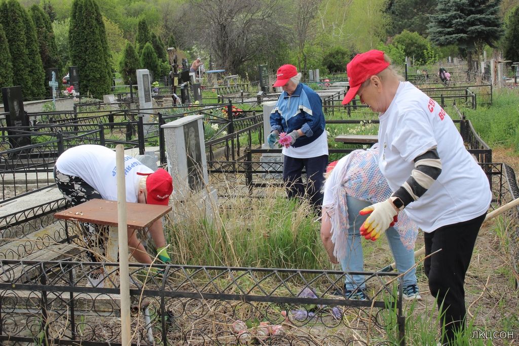 19 апреля 2024 года в преддверии Светлой Пасхи социальные работники отделений надомного обслуживания Лермонтовского комплексного центра социального обслуживания населения, приняли участие уборке необихоженных могил на городском кладбище на Аллее Славы участников Великой Отечественной войны.