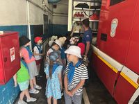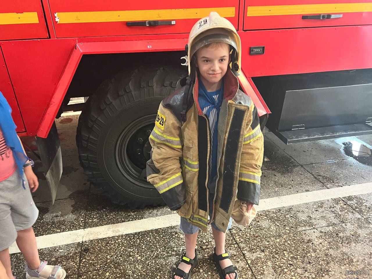 В пожарной части им провели экскурсию по зданию. Показали караульные помещения, дежурно-диспетчерскую службу, помещение для отдыха. Для детей пожарный – человек героический, и в былые годы, и сегодня, спасающий из огня людей, встающий на пути у разрушения.