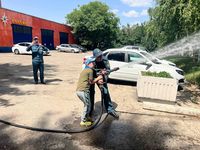 Не менее захватывающим для ребят зрелищем стала работа пожарной машины с подачей воды. Мощная струя воды при солнечном свете создавала радугу, что приводило ребят в настоящий восторг.