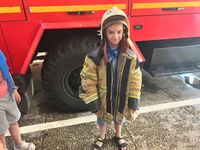 Зрелищное действие произошло в гараже боевых машин. Пожарный показал ребятам предметы боевой одежды, пожарно-спасательное оборудование. Глаза детей горели от восторга – как же им тоже хочется попробовать забраться внутрь. Чтобы удовлетворить жгучий интерес и потребность ребят все-все потрогать, собственно и разрешили это сделать.