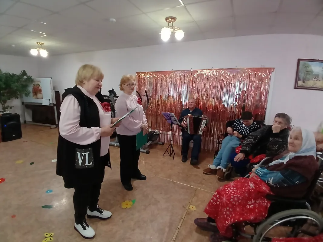 В преддверии праздника артисты Лермонтовского комплексного центра социального обслуживания населения 5 марта 2026 года, по – соседски, вновь отправились с праздничным мартовским приветом в отделение временного проживания граждан пожилого возраста и инвалидов села Винсады