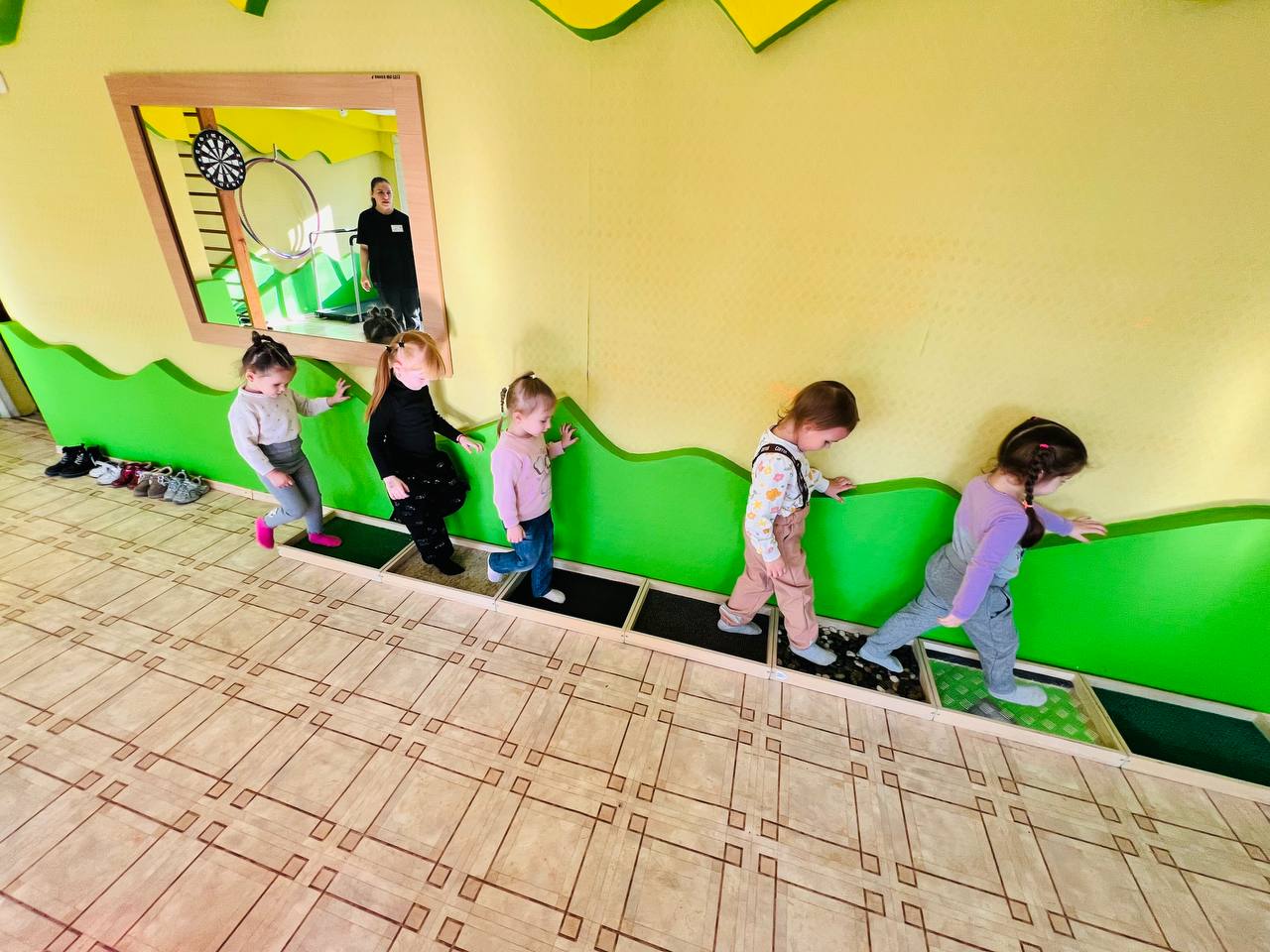 Одна команда отправилась в спортивный зал, где их ждали испытания на ловкость и выносливость. Дети с восторгом исследовали тактильную дорожку, ощущая под ногами разнообразные текстуры, а веселые игры с фитболами зарядили их энергией и подарили море позитивных эмоций.