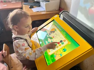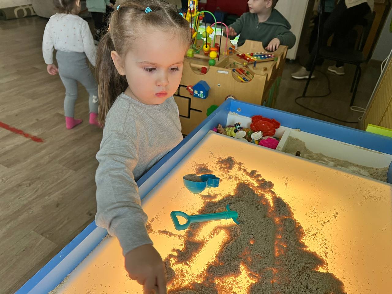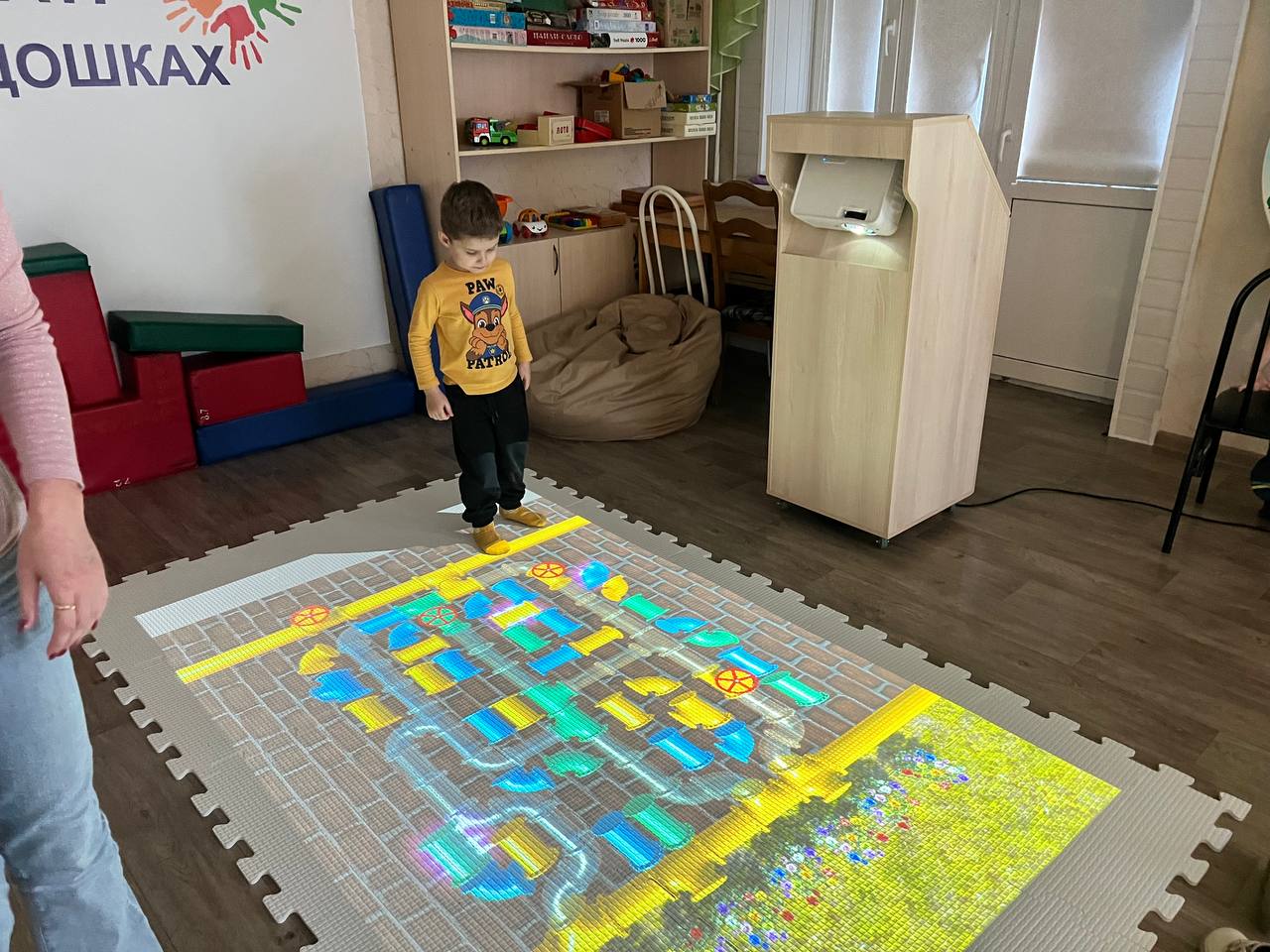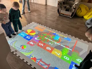 Тем временем, вторая команда погрузилась в мир интерактивных чудес. В волшебной световой песочнице малыши дали волю своей фантазии, создавая настоящие шедевры. Интерактивный стол "Игренок" стал настоящим тренажером для ума, предлагая увлекательные логические задачки и головоломки. А на интерактивном полу ребята с азартом играли в классики, примеряли на себя роль футболистов и дружно сражались с виртуальными жуками.