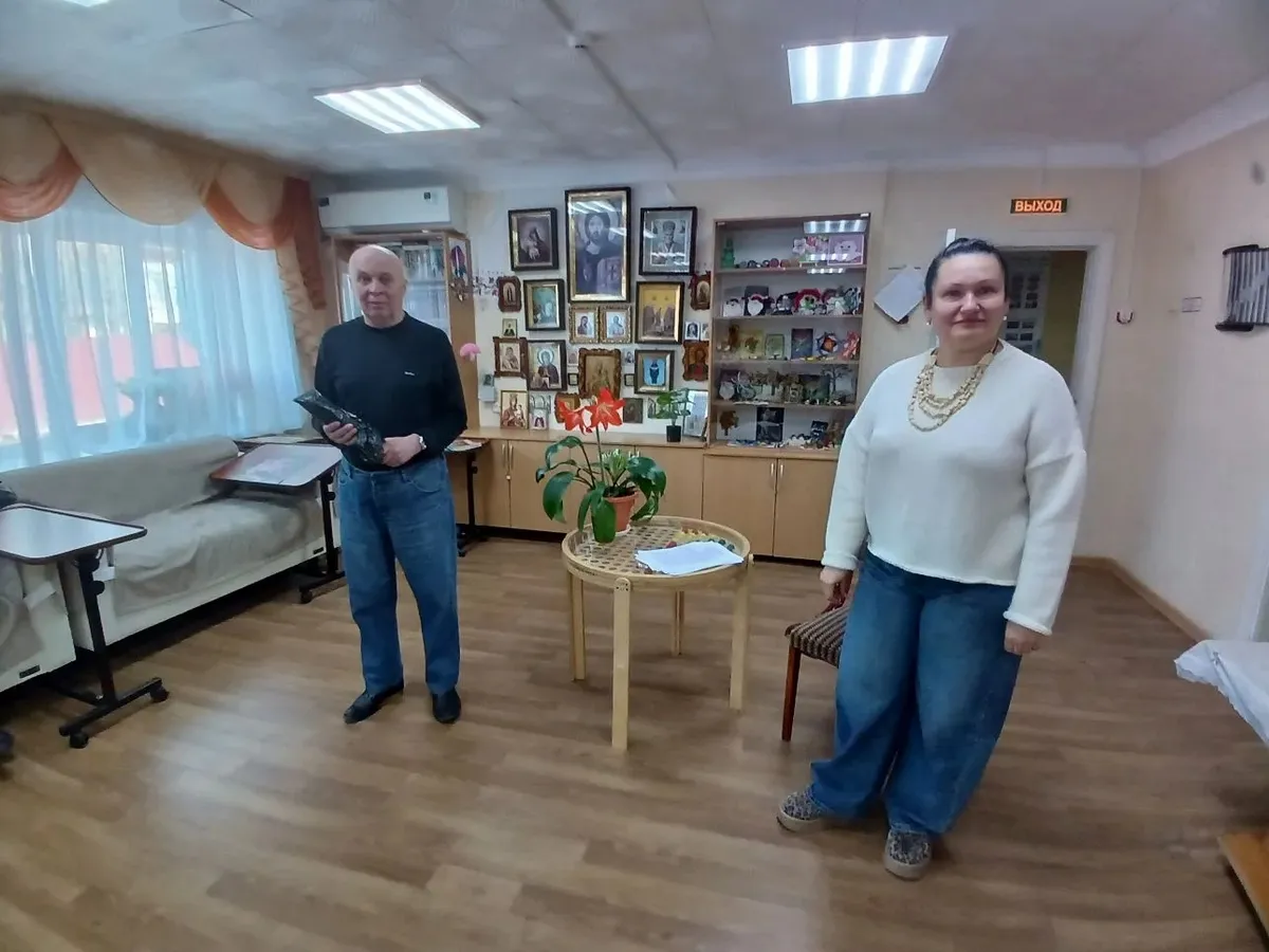 Теплое поздравление от всех присутствующих женщин клиенту отделения Виктору Орежко, наполненное юмором и искренностью. Этот, казалось бы, незначительный, но очень показательный штрих демонстрирует основную философию работы учреждения – создание атмосферы доброжелательности, уважения и заботы. Смех и добрые слова стали финальным аккордом, оставившим в сердцах присутствующих светлые и радостные.