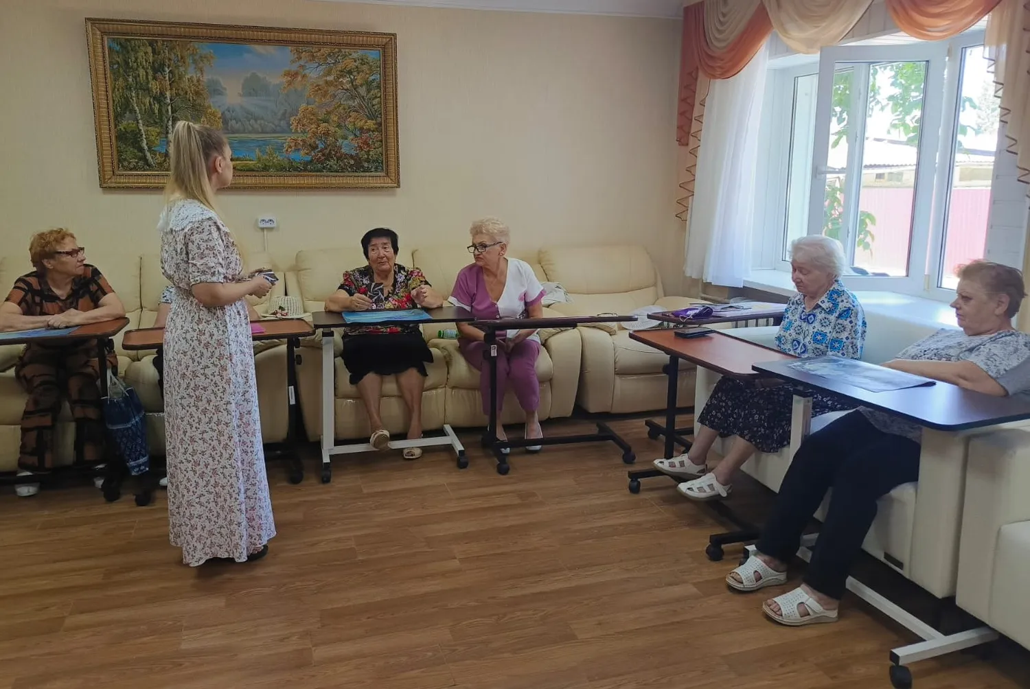 Под руководством психолога социально-оздоровительного отделения Екатерины Балкиной была проведена терапия, в ходе которой пожилые люди познакомились с различными видами метафорических карт, научились интерпретировать символы и образы, представленные на картах, а также создавать собственные истории и ассоциации.