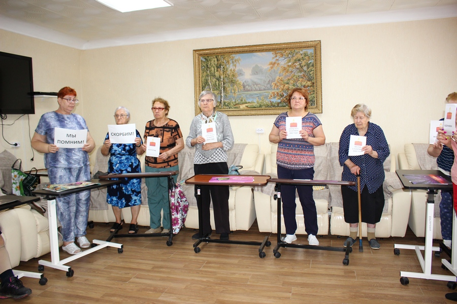 03 сентября 2022 года в Лермонтовском центре социального обслуживания, подведомственном Министерству труда и социальной защиты населения Ставропольского края, в клубе «Золотой возраст» состоялось мероприятие посвященное Дню солидарности в борьбе с терроризмом, в котором приняли участие: творческий коллектив «Театральная шкатулка» (руководитель Шевцова Н.Г.), заведующая библиотекой №1 города Лермонтова Татьяна Старостина, а также 15 получателей социальных услуг центра.