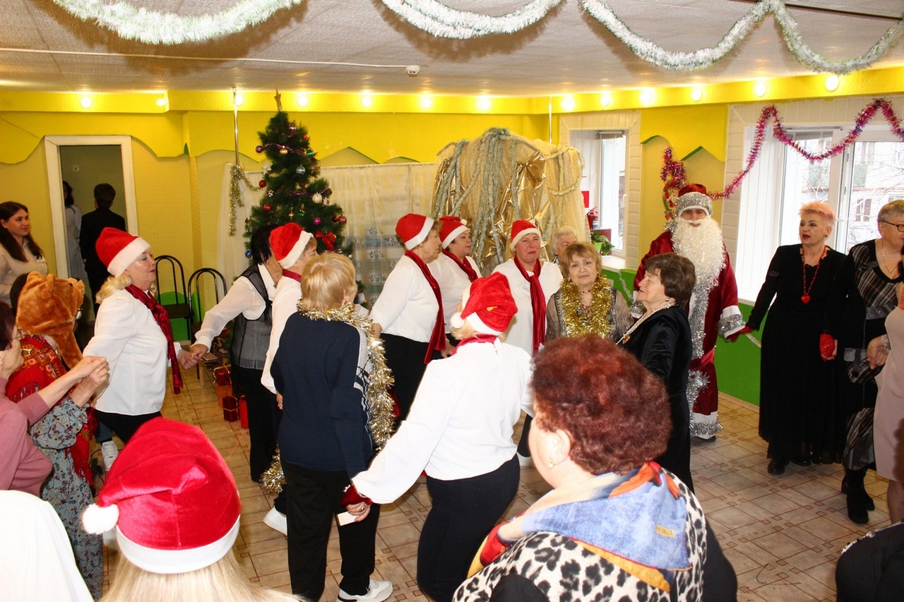 Уже совсем скоро Новый год. Это время, когда происходят настоящие чудеса. Необыкновенно красиво украшенный зал, переодетые артисты, музыка – все создавало праздничную атмосферу и новогоднее настроение. Традиционно, в последнюю среду декабря, позабыв про возраст и состояние здоровья, клиенты социально – оздоровительного отделения Лермонтовского комплексного центра социального обслуживания населения – наши любимые бабушки – пускались в пляс, с интересом участвовали в конкурсах и с удовольствием фотографировались.