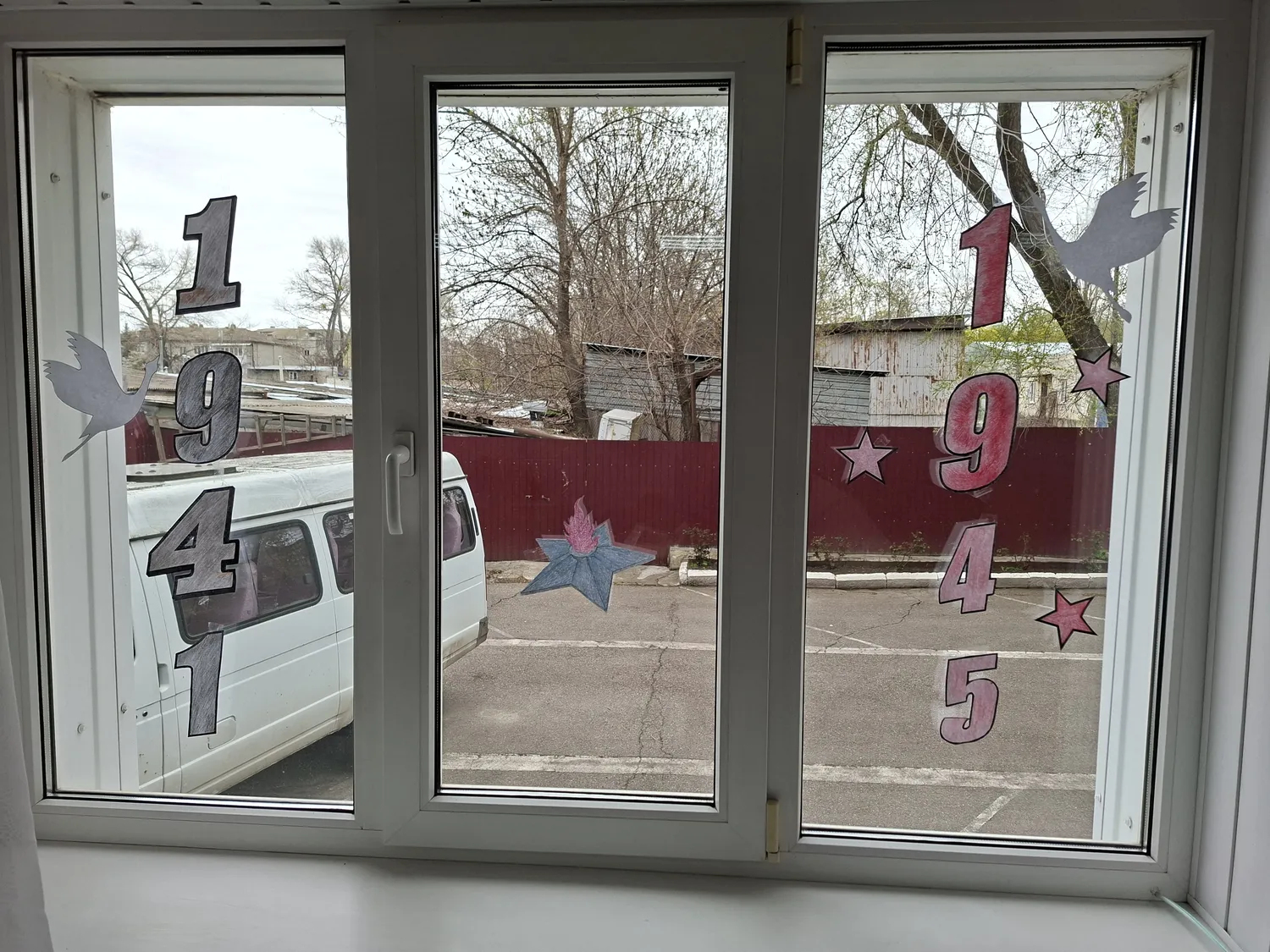 На окнах появились изображения цветов, георгиевских лент, вечного огня, голубей мира и многих других символов, связанных с Победой. Это стало своеобразной данью уважения и благодарности тем, кто сражался за нашу свободу и мирное небо над головой.