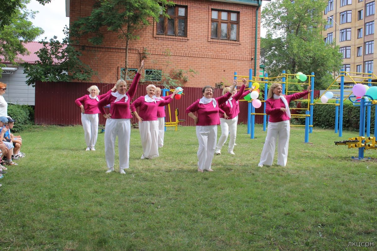 На украшенной площадке учреждения состоялась праздничная программа, которую подготовили творческие коллективы граждан пожилого возраста: «Театральная шкатулка» и «Танцевальные узоры» (руководитель Шевцова Н.Г.). Их зажигательные танцы и задорные стихотворения о спорте никого не оставили равнодушными. Дети, посещающие лагерь «Забота», приняли участие в флешмобе.