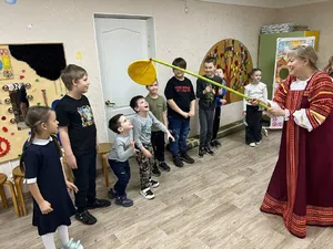 В этот день отделение наполнилось особенным теплом. Для ребят, получающих услуги в центре, была организована настоящая праздничная программа. Зал превратился в импровизированную сцену, где развернулось театрализованное представление. Главную роль — задорной Забавы — исполнила приглашенный педагог-организатор ЦРТ «Радуга» Екатерина Бобрусева