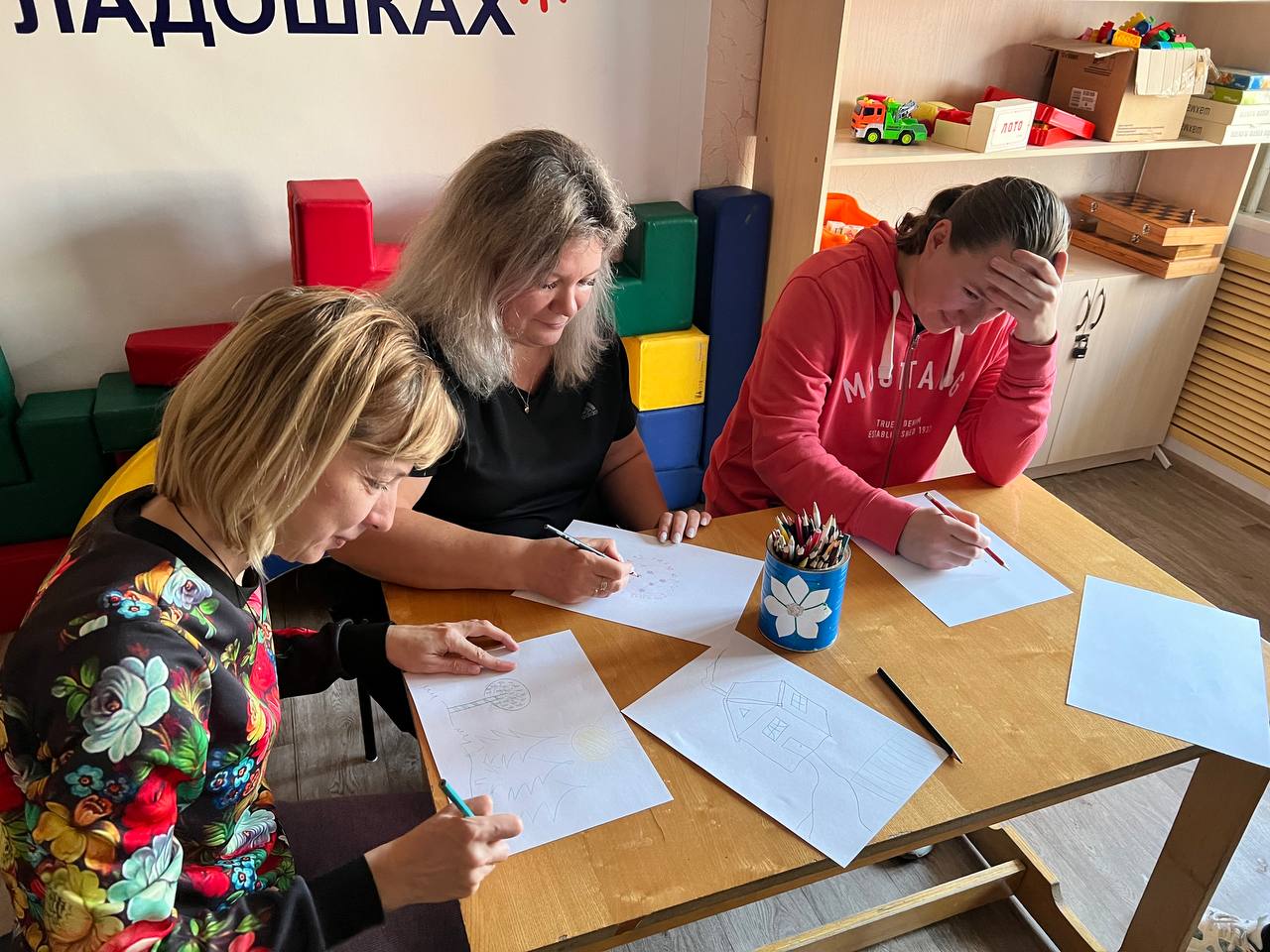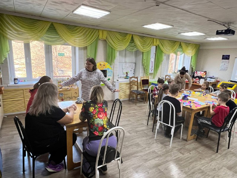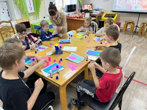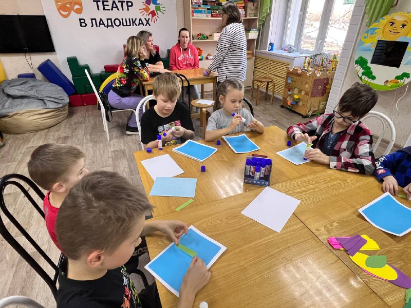 В уютной творческой мастерской царила оживленная атмосфера: дети с искренним старанием выбирали цвета, клеили аппликации и подписывали свои работы.