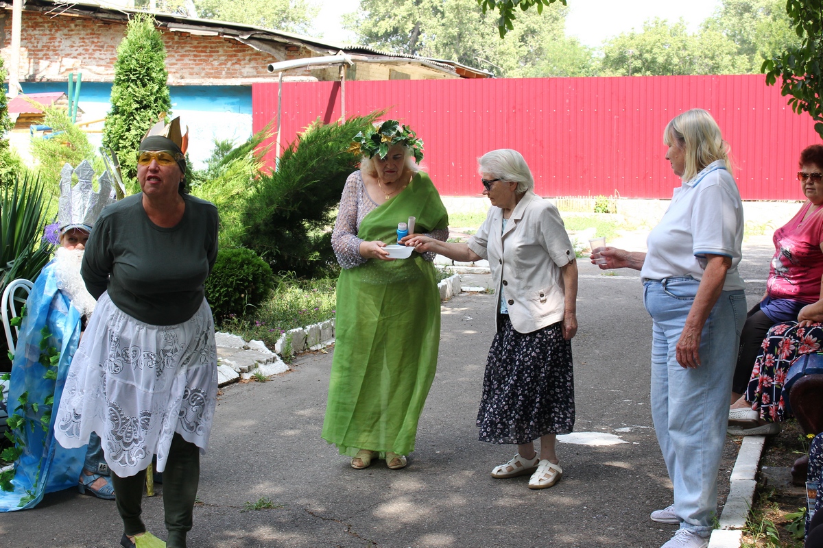 Праздник собрал 15 получателей социальных услуг. Главными действующими лицами театрализованного представления стали повелитель водных стихий – царь Нептун и его морская свита: русалка, черепаха, лягушка. Красочные костюмы и потрясающее шоу мифологических героев не оставили без внимания не только пенсионеров, но и всех присутствующих людей. Столько смеха, веселья, интересных викторин, связанных непосредственно с темой праздника, и, конечно же, главный герой царь Нептун со своей свитой доставили массу удовольствия от завораживающего театрального мастерства.