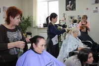 Особым блеском и стильным дизайном встретил наших клиентов красивейший и очень уютный салон учебного центра. Юные и совершенно очаровательные парикмахеры в процессе работы щедро делились с пенсионерами душевной добротой и любовью. Начинающие мастера трудились на славу, каждой женщине они старались придать свой неповторимый имидж, параллельно делились советами по уходу за собой. Мастерами была проделана большая работа - стрижка, окрашивание волос, укладка, маникюр!