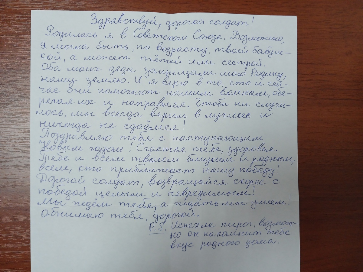 «Здравствуй, сынок!» – такими теплыми словами начинается практически каждое письмо, написанное нашими бабушками. 23 декабря 2026 года, в последние предновогодние деньки, клиенты социально–оздоровительного отделения Лермонтовского комплексного центра социального обслуживания населения передали бойцам донецкого направления новогодний привет.